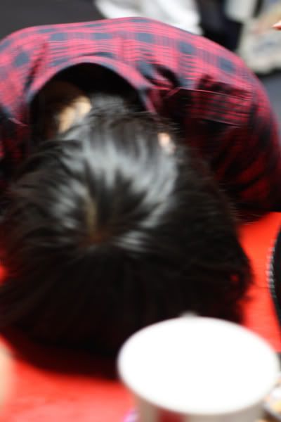 Went around taking mug shots. Andrew couldn't keep a straight face so he just dropped his head cracking up on the table.