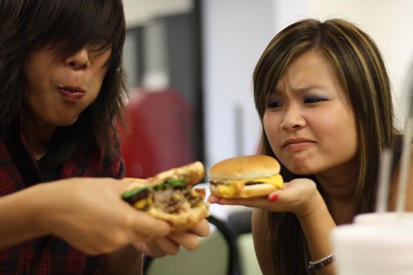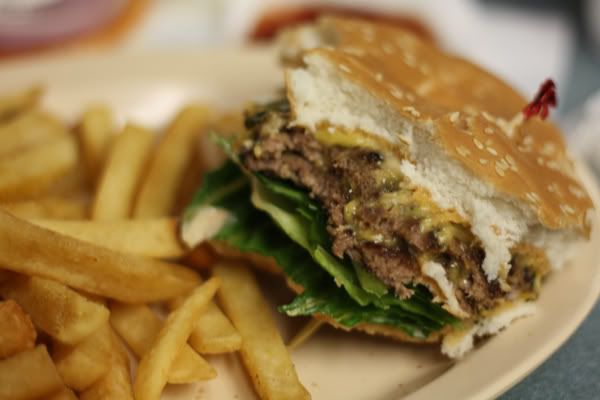 Becky's cheeseburger compared to Andrew's; The typical shot of what I ate. Too bad I forgot to take one at the beginning and that's why it's pretty eaten up.