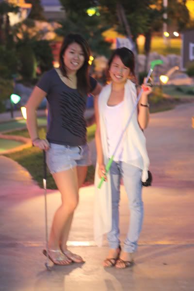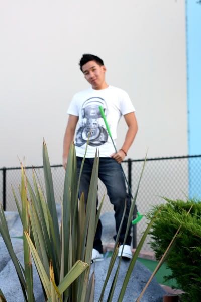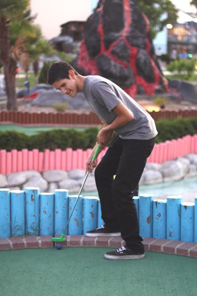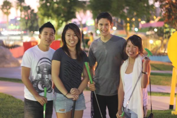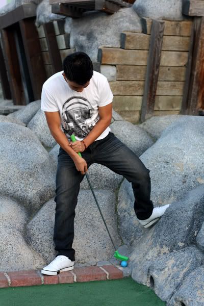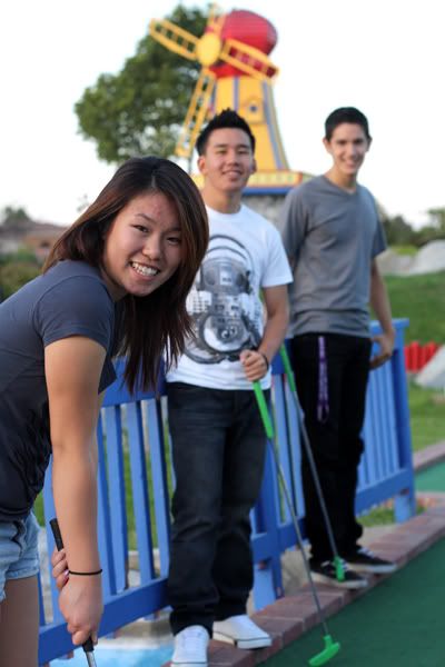 Miniature golfing in action. Group shot before we were finished golfing. I got a hole in one on my last shot :)