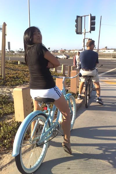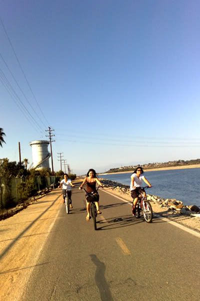 I got home to get ready to go bike riding to the beach for the first time and maybe the last because my eyes, butt, and legs are sore. We left at around 4 and took the bike trail. We got to the beach at 5ish. Biking there sucked with all the hills we had to bike up and all. Plus the wind blowing in our faces. We took the streets back home. Even though it took longer, I enjoyed the obstacles we had to go through and what not.