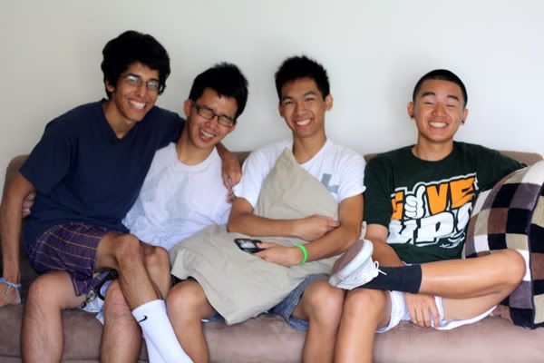 I had visitors Friday night until Saturday afternoon. :) Peter, Jonathan, Marco, and Jerry came down to San Diego to check out and not only visit me, but to meet some girls probably. Haha. I really didn't think they'd come down here and I don't want to be bitter about only going down here to meet some girls, because life shouldn't be about bitterness. I got to spend time with them and it makes me miss hanging out with them back at home. We visited Becky at her dorm, stayed up pretty late in my common room, had breakfast at OVT, went to the Geisel Library and bookstore, and went in the water at the beach. We were going to watch a movie also, but they had to get back in Orange County by 6. I miss them already. I miss their quirkiness and funny behaviors.