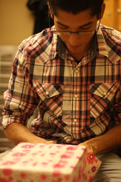 Opening his presents from me.